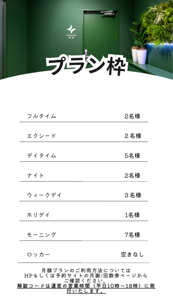 10月24日12時より西新店の月額プランの募集が再開されます。